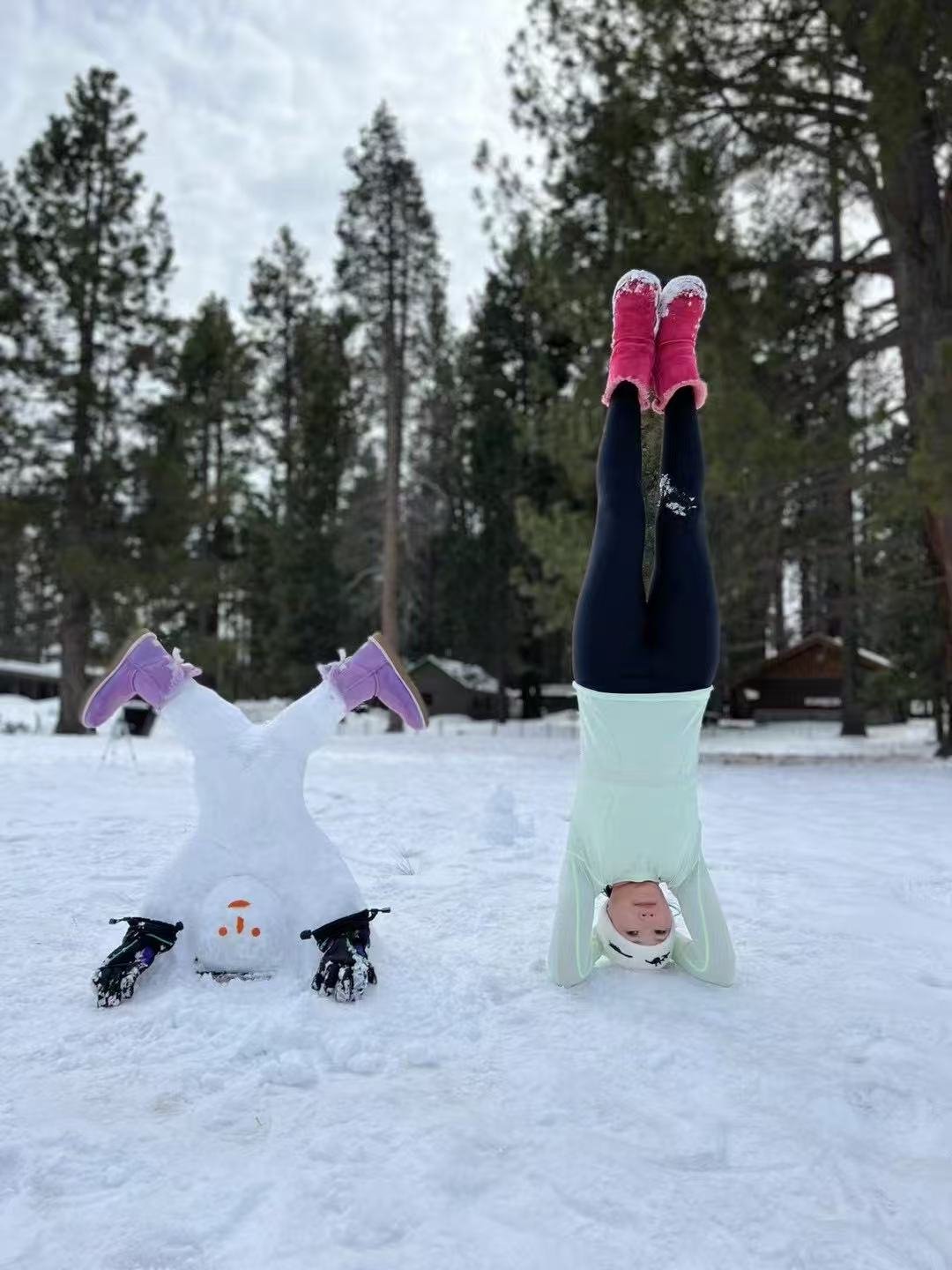 Lake Tahoe滑雪第一天就摔傷手,倆人世界過了一個雪景泡湯及堆倒立雪人的美妙假期。