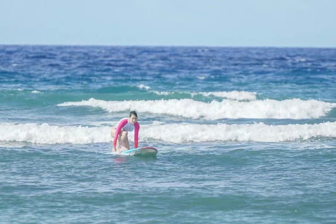 住在台灣防疫酒店,並於台北學習沖尾浪,然後去新加坡旅遊。
